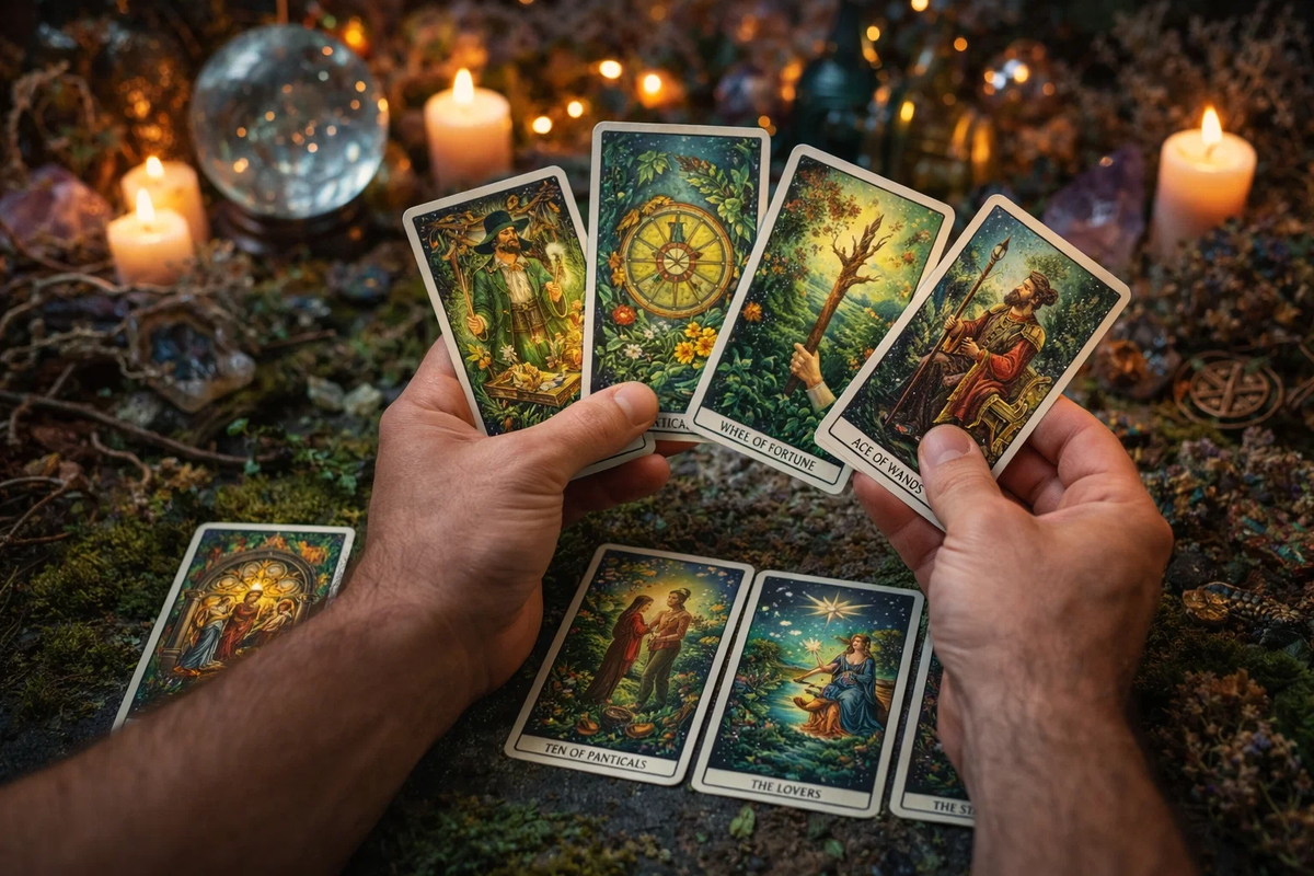 Приветствую, милые дамы. С вами Иван — таролог и психолог. Сегодня тема глубокая и интересна: вам открывают зелёный коридор судьбы. Это не просто “станет лучше”. Это период, когда пространство начинает работать на вас. Когда совпадения перестают быть случайными, а решения приводят к результату быстрее обычного. В раскладе вышли карты: Маг, Колесо Фортуны, Туз Жезлов, Десятка Пентаклей, Влюблённые, Звезда, Король Жезлов. Начинается всё с Мага. Это сигнал: вы входите в фазу силы. Не жертва обстоятельств, не ожидание милости, а управление. У вас появляются инструменты — знания, связи, ресурсы. То, что раньше казалось сложным, вдруг становится понятным. Маг — это когда вы влияете на ход событий. Колесо Фортуны подтверждает: начинается поворот. Причём быстрый. Ситуации складываются в вашу пользу. Люди появляются вовремя. Документы оформляются легче. Вопросы решаются быстрее. Это и есть зелёный коридор — когда Вселенная убирает лишние препятствия. Туз Жезлов — вспышка новой энергии. Проект,
