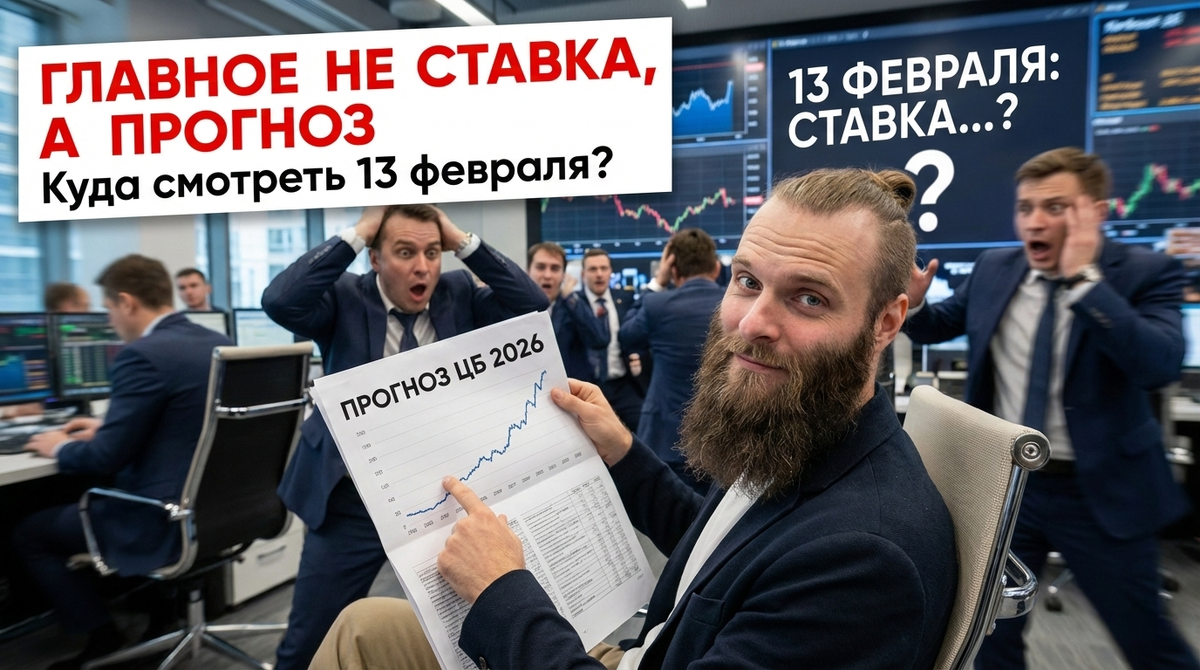 Послезавтра, 13 февраля, ЦБ объявит решение по ключевой ставке. Все смотрят: снизят до 15,5% или оставят на 16%? А вот и нет. Это не самое главное. Главное — какой прогноз по средней ставке на 2026 год озвучат. Вот от этого зависит, будут твои бонды расти или просядут еще ниже. Сейчас объясню, почему все смотрят не туда.