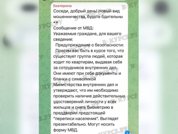 Они просят персональные данные якобы для предстоящей переписи населения. В Перми появилась новая схема мошенничества. Группа людей, иногда в костюмах сотрудников МВД, ходят по квартирам и просят показать документы и снять биометрию. «Они имеют при себе документы и бланки с символикой МВД и утверждают, что им необходимо проверить наличие действительных удостоверений личности у всех жильцов и снять биометрию в преддверии предстоящей переписи населения», — такое предупреждение пересылается в домовых чатах Перми. Людей, согласно этой информации, просят снять отпечаток пальца или сделать фотографию. Существуют ли в реальности эти мошенники — неизвестно. Однако в ЦУР Пермского края и в ГУ МВД России по Пермскому краю нам подтвердили, что полиция точно таких обходов не проводит. Поэтому пермякам нужно быть бдительными и никому не давать свои персональные данные.