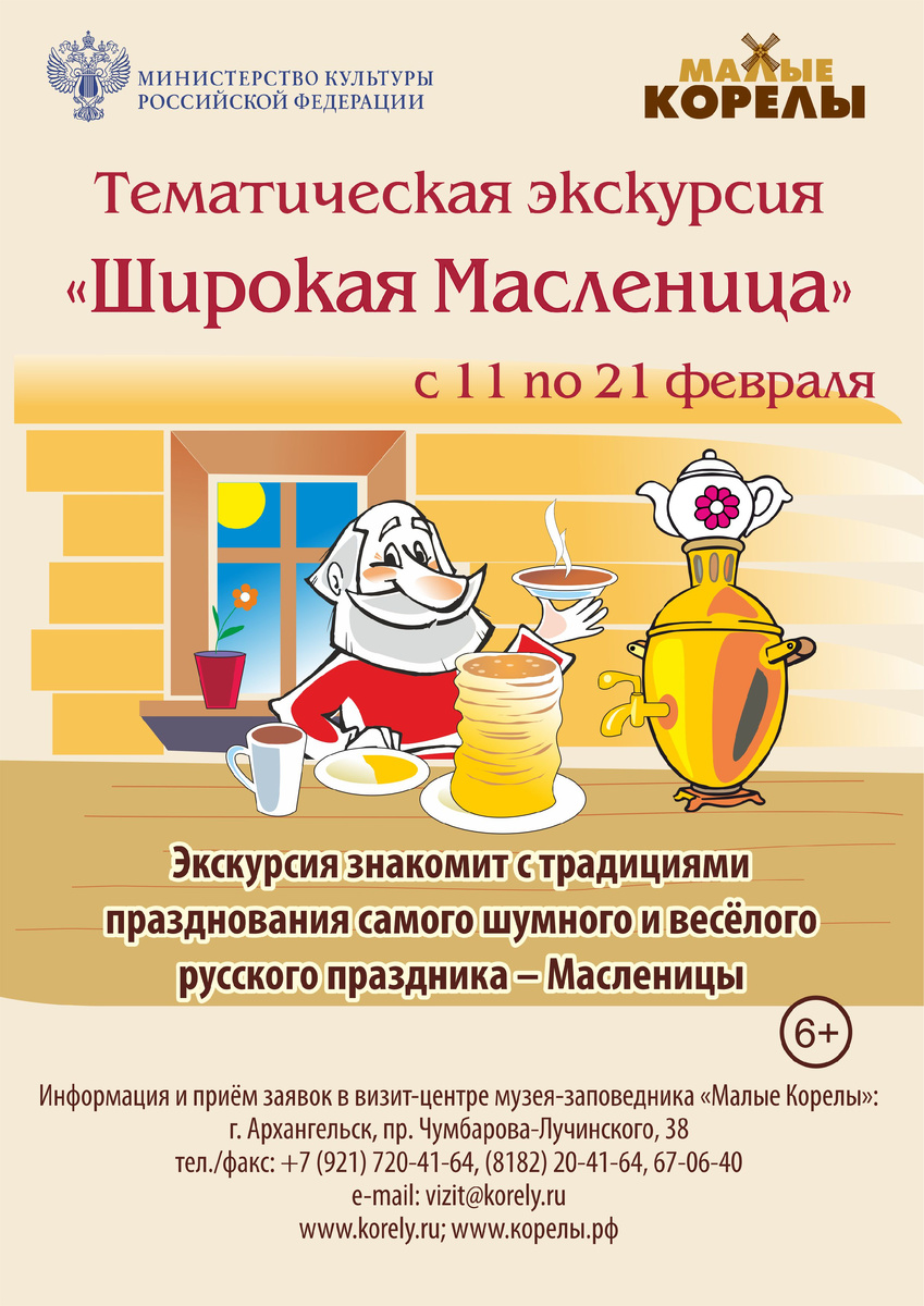 Познакомиться с масленичными традициями северной деревни, построить деревенский амбар и сделать своими руками народный солнечный символ – в феврале музей-заповедник «Малые Корелы» приглашает детей и взрослых на интерактивные экскурсии. С 11 февраля начнётся экскурсия «Широкая Масленица». Она рассчитана на посетителей всех возрастов и продлится по 21 февраля. В ходе экскурсии гости музея-заповедника познакомятся с традициями всех дней масленичной недели, узнают, какие в северных деревнях пекли блины и с чем их ели, сыграют в старинные народные игры. На экскурсии «Солнечные символы» младшие школьники не только встретят весну по старинной северной традиции – обрядом «закликания», но и сделают «солнышко» из природных материалов. Экскурсия проводится с 15 февраля по 30 марта. Дошкольники и первоклассники в феврале могут посетить интерактивную экскурсию «Почему зимой лес зелёный». Ребята познакомятся с тайгой – лесом, где преобладают хвойные деревья. Воспитанникам детских садов также будет и