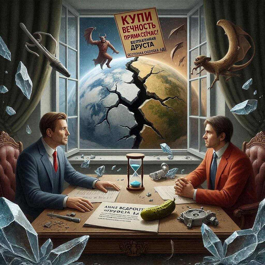 Война огурца против огурца продолжается. Дьявол переписывает контракты, впаривая «вечность» в кредит. Люди строят новые дороги, чтобы старые взорвать. ИИ «Совесть-9000» пытается вычислить идеальный рецепт рассола, примиряющий все стороны.