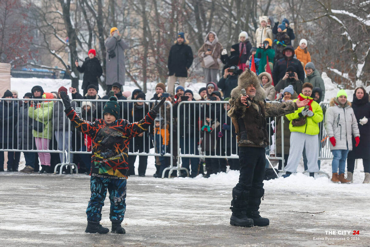 За полчаса до начала арена наполнялась зрителями. Семьи, молодёжь, пожилые люди — все ждали чуда. Круглая площадка с большой новогодней ёлкой в центре стала эпицентром событий. Перед ареной расчистили дорожку для техники — ещё утром там работал бульдозер, догребавший остатки снега.