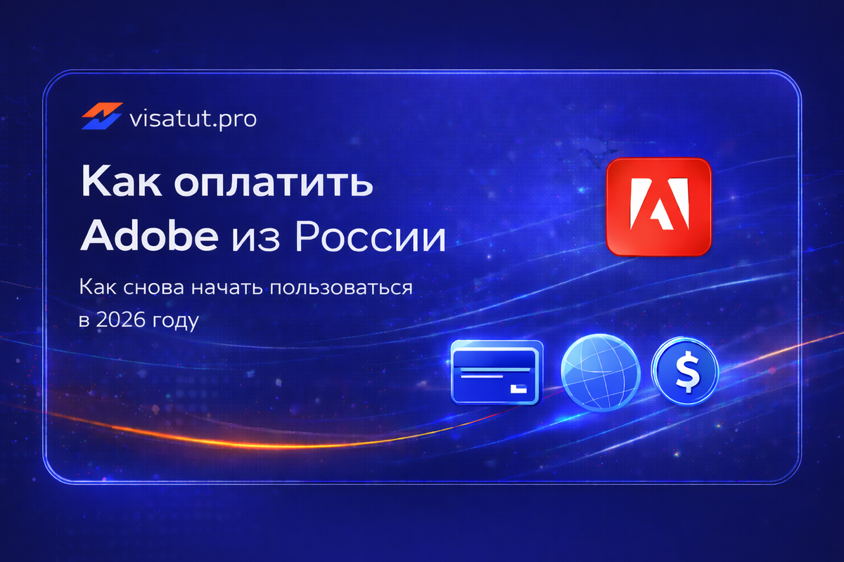 Для продления подписки требуется международная банковская карта. Это наиболее предсказуемый способ, позволяющий подключить автопродление и не зависеть от посредников. Оплата проходит в валюте выбранного региона аккаунта, а списания происходят автоматически. Альтернативы через третьи сервисы существуют, но они создают зависимость и повышают риски блокировок. Если Creative Cloud используется для постоянной работы, разумно выстроить стабильную систему расчётов. Зарубежная карта решает задачу не только для Adobe, но и для Figma, Google, Zoom и других сервисов, которые входят в ежедневную рабочую среду специалистов. VISATUT.PRO позволяет оформить такую карту удалённо за 2 000 рублей. Подходит для регулярной оплаты Adobe и других зарубежных сервисов.