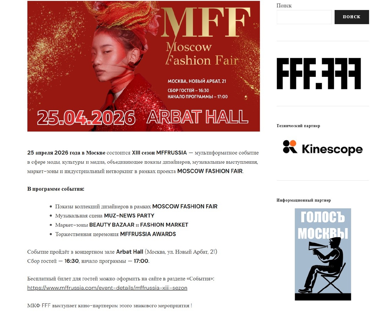 МКФ FFF выступает кино-партнером этого знакового мероприятия!