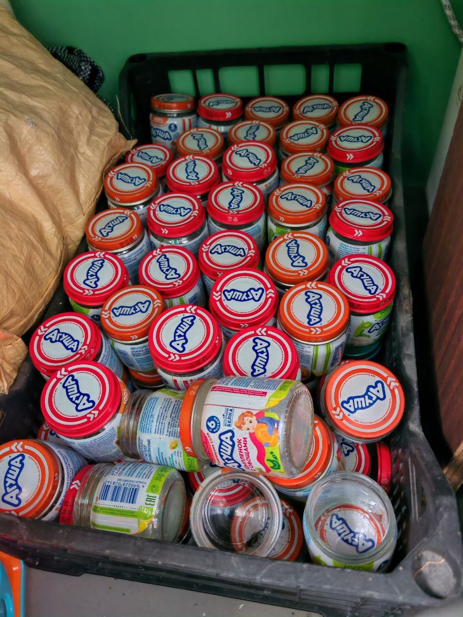 Отдам баночки из-под пюре, два ряда. Может, кому нужно для поделок