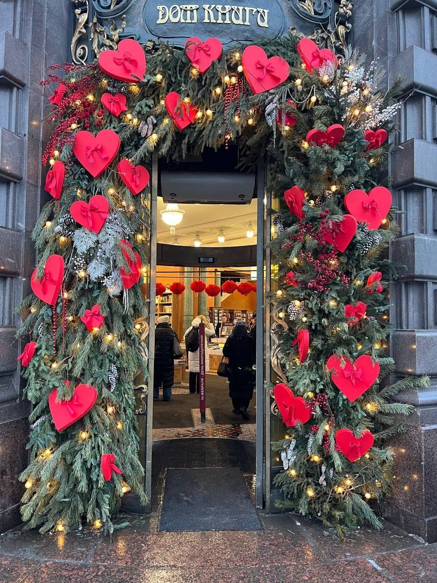 ❤️ Дом Книги украсил вход ярко-красными сердечками и предлагает влюбиться в мир заново с помощью книг