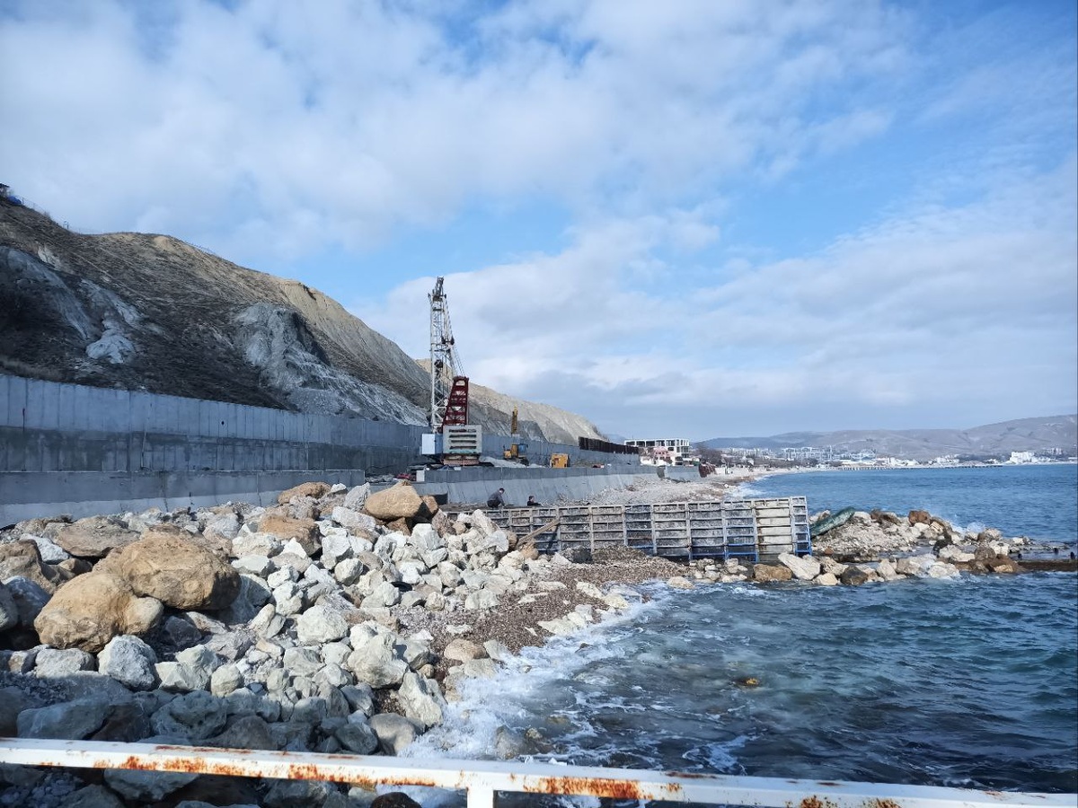 Новый волнорез строится у правого края реконструкции набережной в Коктебеле