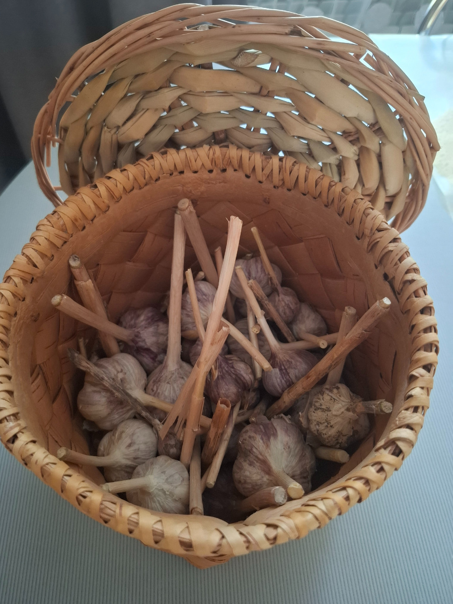 Приветствую читающих. В феврале солнце становиться ярче и понимаешь, что уже совсем немного и весна. А когда чувствуешь приближение весны , чувствуешь и приближение садово-огородных хлопот. Начинаешь ревизию оставшихся семян и прикидываешь , что еще надо купить для посадки. Но дело не только в семенном материале, а в том что еще надо подвести итог съеденного и не съеденного. Сегодня о том, что едим . Чеснок это такой обычный продукт, который просто всегда есть и вопрос садить или нет не возникает никогда. Тем более уже посажен осенью. Вопрос всегда в хранении. Озимый чеснок зачастую плохо хранился. Что только не пробовала. Последний вариант был- стеклянные банки. Вроде было получше, но все же высох. В этом году , раз я увязла в увлечении берестой, сплела берестяной короб или туес специально для хранения чеснока. Результат радует. Показываю. Специально даже разрезала поперек чтобы показать сохранность всех долек. Сказать что все такие, нет , в некоторых попадаются высох