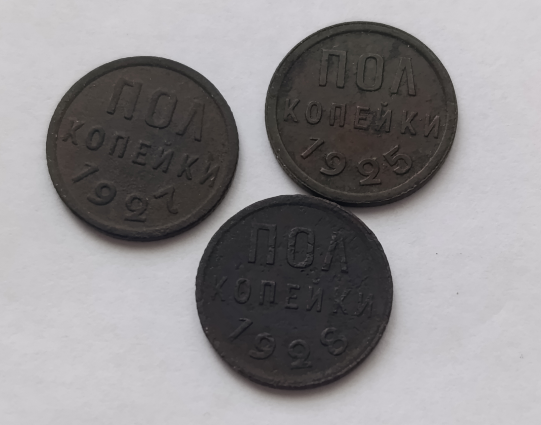 А я и не знал, что в советское время в обращении были монеты номиналом в полкопейки. Не знал ровно до тех пор, пока не стал коллекционировать монеты. Сначала купил себе полкопейки 1925 года, а потом ... Сейчас у меня накопилось штук 15 советских полкопеечников. Три монеты лежат в альбоме, так как монеты датированы лишь тремя годами - 1925, 1927, 1928. Их нумизматическая стоимость зависит от редкости. 1925 год - довольно распространенный. Средняя цена монеты - около 500-700 рублей. 1927 год - встречается более-менее не часто. Средняя цена монеты - около 1000-1200 рублей. 1928 год - редкий год. В среднем монета стоит 3500-5000 рублей. Данные цены распространяются только на те монеты, которые имеют очень хорошую сохранность (VF). На нумизматическом рынке монеты в полкопейки дефицитом не являются. Даже 1928 года. Но это сегодня, когда кладоискатели-любители находят тысячи этих монет каждый год. А был ли дефицит полкопеечников во времена СССР, когда эти монеты уже давно не участв