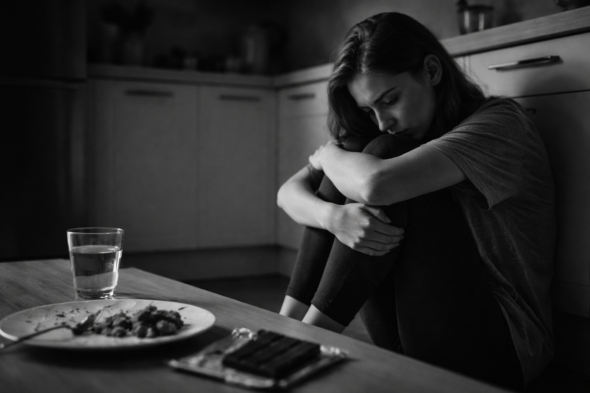 Кортизол усиливает тягу к быстрой энергии. То есть к еде. Получается цикл: Переела → почувствовала вину → вырос стресс → снова захотелось еды → ещё больше вины. Ты думаешь, что становишься строже к себе.