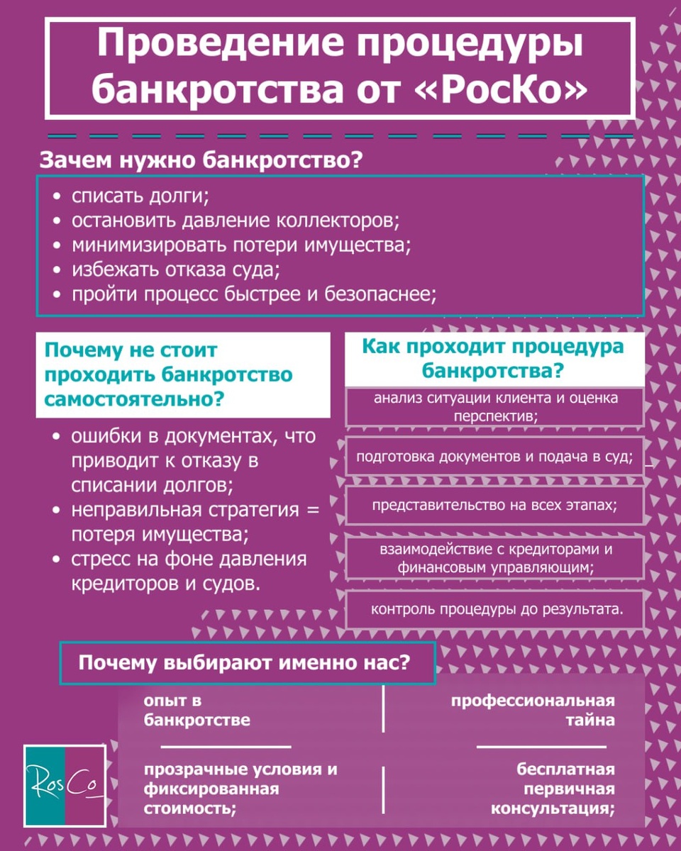 Компания «РосКо» проводит банкротство физических и юридических лиц под ключ — до полного списания долгов. Самостоятельные попытки часто приводят к отказу суда, потере имущества и затягиванию процесса. С нами иначе. Мы проводим анализ ситуации и оценку перспектив. 💼 Если процедура вам подходит, мы: 🔸формируем пакет документов; 🔸подаём заявление в суд; 🔸представляем ваши интересы на всех заседаниях; 🔸ведём переговоры с кредиторами; 🔸контролируем работу финансового управляющего; 🔸доводим дело до результата — списания долгов. 🔎 Почему клиенты выбирают нас? 🔸опыт в банкротстве; 🔸профильные юристы; 🔸прозрачные условия и фиксированная стоимость; 🔸первичная консультация; 🔸конфиденциальность. 🤝 Запишитесь на консультацию +7 499 444-00-00/sale@rosco.su – разберём вашу ситуацию и предложим законное решение. 📎 Подробнее: https://rosco.su/yurist/yurist-po-bankrotstvu/ 💼 RosCo в Telegram и Max