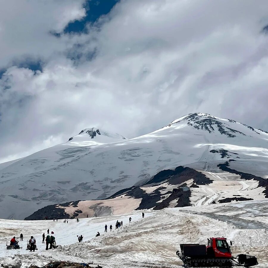 - Величественный Эльбрус величественно вздымается на фоне небес