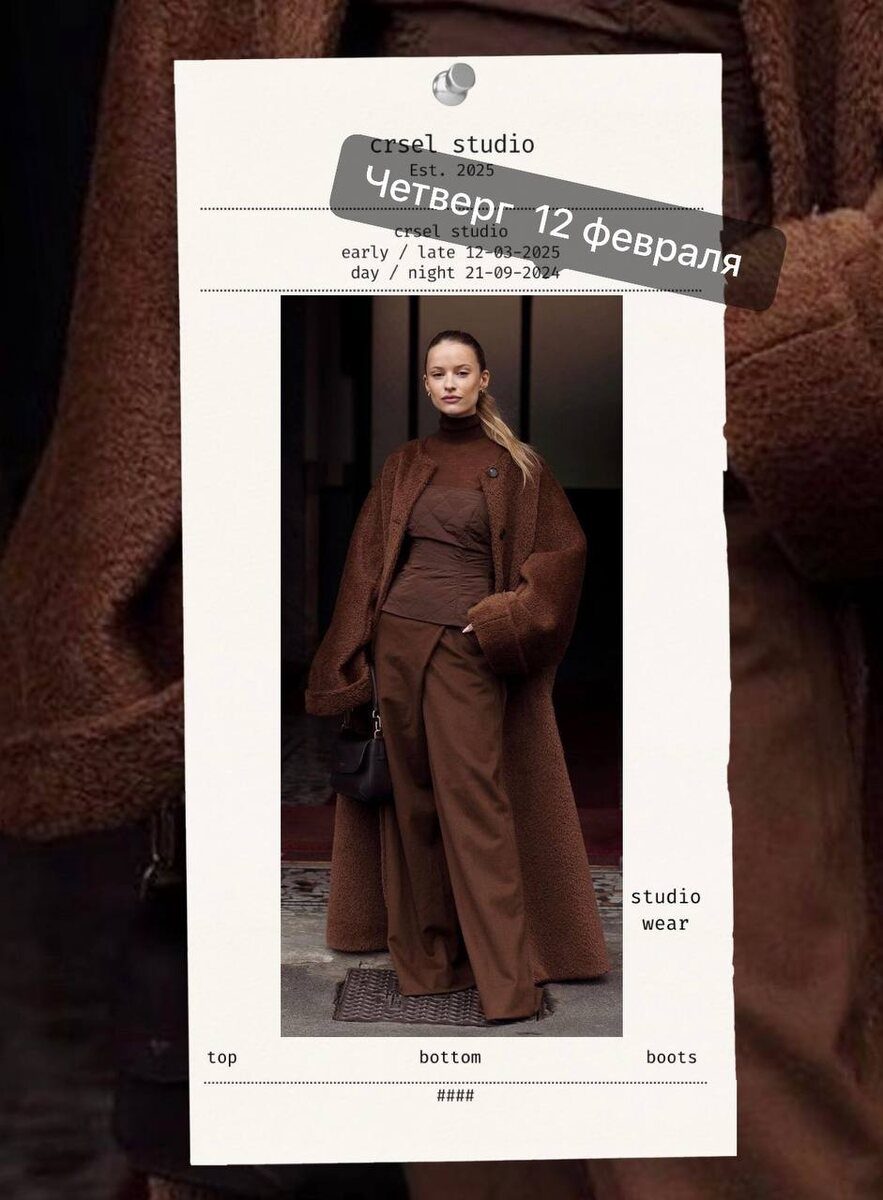 12 ФЕВРАЛЯ — ЧЕТВЕРГ День Юпитера с арканом Повешенный и переходом Луны из Стрельца в Козерог — про паузу и переосмысление. Сегодня важно не торопиться и не форсировать. Лучше выбирать спокойные, заземляющие оттенки: молочный, песочный, коричневый, серый. По вещам — комфорт и простота: трикотаж, свободные брюки, мягкий жакет, длинный верх. Детали — минимальные, без акцентов. Стиль сегодня помогает замедлиться и услышать себя, а не ожидания других.