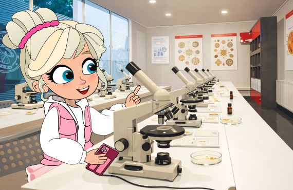 В учебной лаборатории Дарвиновского музея проводят исследования и научные опыты с помощью микроскопа. На занятиях можно выделить ДНК из банана.