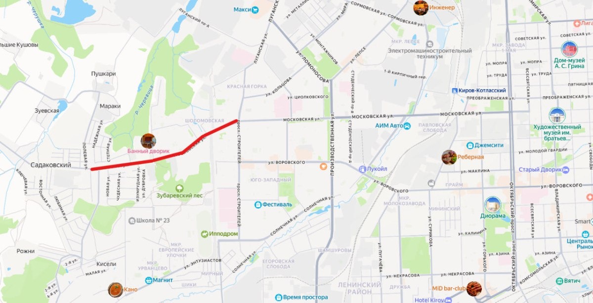 В Кирове изменилась схема движения на участке улицы Московской от проспекта Строителей до посёлка Садаковский