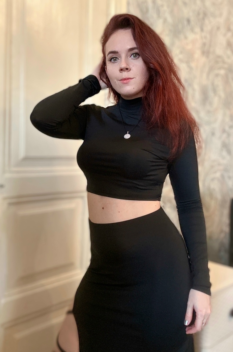 Купила еще где-то полгода назад комплект на Wildberries. Это кофта с горлом и юбка в пол. Очень хотела поделиться впечатлениями, потому что эмоции до сих пор смешанные. Подписывайтесь на мой канал в ТГ, там много видео и фото со мной: https://t.me/alexlexy111 Начну с кофты. Она просто потрясающе сидит. Облегающая, мягкая, тянется ровно настолько, чтобы чувствовать себя комфортно, но при этом фигура подчеркнута идеально. Горло высокое, закрытое, без всяких вырезов, и это придает образу строгости и какой-то спокойной уверенности. Кофта короткая, до талии, но не настолько, чтобы казаться вызывающей. Самый кайф — вырезы для пальцев. Я думала, это просто для красоты, а оказалось, что и для удобства. Рукава не задираются, пальцы продеты, и весь рукав сидит как влитой. К тому же выглядит очень стильно и чуть дерзко, но без перебора. Юбка длинная, в пол, с разрезом сбоку. И вот тут начинается самое интересное. Разрез идет от самого бедра, почти до середины бедра, и когда стоишь на месте, эт