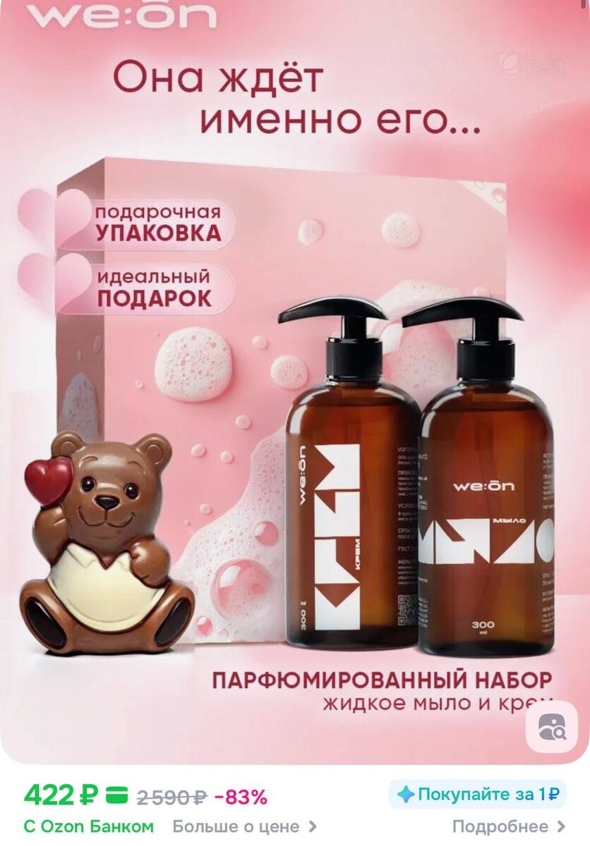 😀😀😀WE:ON Подарочный набор парфюмированное жидкое мыло и крем для рук с дозатором