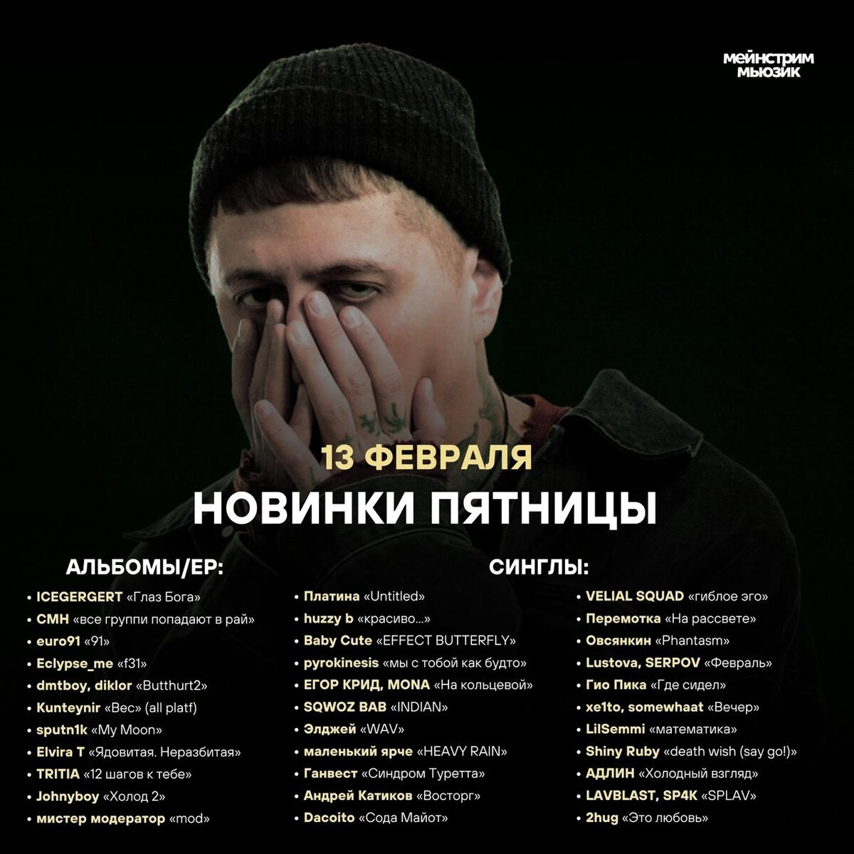 Альбомы / EP: • ICEGERGERT «Глаз Бога» • CMH «все группи попадают в рай» • MORGENSHTERN «Dead Sea Live (Acoustic Live)» • ONDA ANDAR «KIDSCRY2DAY» • euro91 «91» • Eclypse_me «f31» • dmtboy, diklor «BUTTHURT 2» • Kunteynir «Вес» (all platf) • sputn1k «My Moon» • Elvira T «Ядовитая. Неразбитая» • TRITIA «12 шагов к тебе» • Johnyboy «Холод 2» • мистер модератор «mod» Синглы / макси-синглы: • Платина «Гикаю» • Yanix, Джон Гарик «Guess Who's Back» • huzzy b «красиво...» • Baby Cute «EFFECT BUTTERFLY» • pyrokinesis «мы с тобой как будто» • ЕГОР КРИД, MONA «На кольцевой» • SQWOZ BAB «INDIAN» • Элджей «WAV» • маленький ярче «HEAVY RAIN» • Андрей Катиков «Восторг» • Dacoito «Сода Майот» • Молодой Владимир «GG» • VELIAL SQUAD «гиблое эго» • Перемотка «На рассвете» • Овсянкин «Phantasm» • Lustova, SERPOV «Февраль» • Гио Пика «Где сидел» • xe1to, somewhaat «Вечер» • LilSemmi «математика» • Shiny Ruby «death wish (say go!)» • АДЛИН «Холодный взгляд» • LAVBLAST, SP4K «SPLAV» • DVRST «Strayed» • R