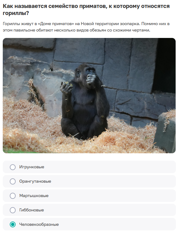 «Московский зоопарк онлайн: гориллы». Правильные ответы викторины на сайте Активный гражданин
