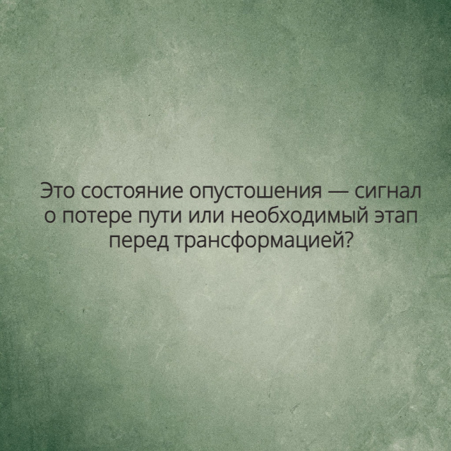 Так сигнал ли о потере пути это состояние опустошения или необходимый этап перед трансформацией? Ответ на этот вопрос зависит от конкретной ситуации и взгляда человека. Возможно, в некоторых случаях опустошение действительно указывает на то, что мы заблудились, а в других — служит фундаментом для нового жизненного этапа.