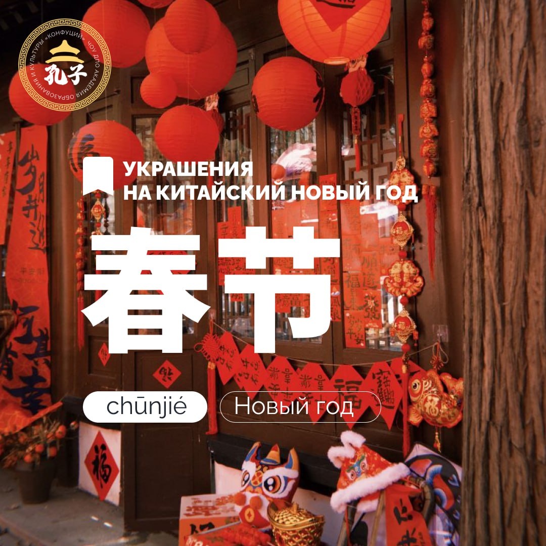! 🐥灯光秀 (Dēngguāng xiù) — современное, но ставшее уже традицией масштабное украшение городов. Это лазерные и проекционные шоу, световые инсталляции на зданиях, фонтанах, деревьях. ❓福字 (Fú zì) — иероглиф «Счастье», самое главный символ Нового Года. Его часто вешают вверх ногами (倒福, dào fú). Это игра слов: «перевернутый» (倒, dào) звучит так же, как «приходить» (到, dào). Так получается пожелание: «Счастье пришло!». 🎊灯笼 (Dēnglong) — традиционные фонари из бумаги, шёлка или пластика. Можно увидеть везде — на улицах, в магазинах, домах. Гирлянды из фонарей (灯笼串, dēnglong chuàn) — главное уличное украшение. 🌹窗花 (Chuānghuā) — искусство ажурной вырезки из красной бумаги. Узоры могут быть очень сложными: иероглифы, цветы, животные-символы года (например, дракон). 🙏春联 (Chūnlián) — парные полосы красной бумаги с поэтичными пожеланиями удачи, здоровья и богатства в наступающем году. Вешаются вертикально по бокам двери. Знакомство с культурой — ключ к пониманию менталитета и языка. Теперь,