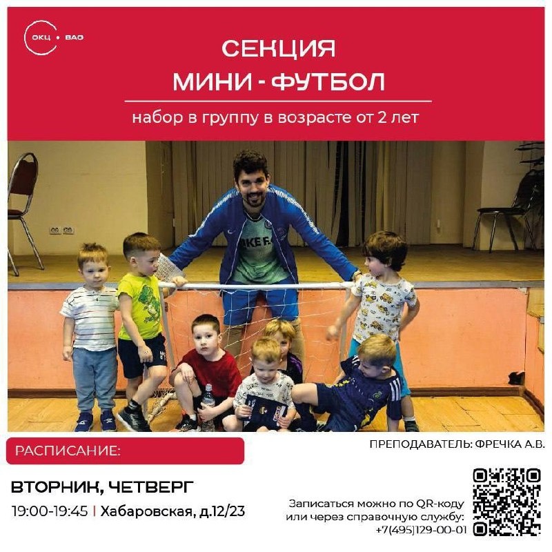 ! ⚽️ Приводите его на наши тренировки — здесь мы растим не только футболистов, но и характер! Мы предлагаем: 🤩Профессиональный тренер с опытом работы с детьми 🤩 Увлекательные тренировки через игру и дружескую атмосферу 🤩Всестороннее развитие: координация, выносливость, работа в команде 🤩 Участие в турнирах и праздниках 📍 Адрес: Хабаровская ул., 12/23 (библиотека №72) 🗓 Расписание: Вторник, четверг 19:00–19:55 ❤ Первая пробная тренировка — БЕСПЛАТНО! Убедитесь сами, как загорятся глаза вашего ребенка! Для записи на занятия: 89037806923 Или пишите в телеграм https://t.me/alexeyfrechka Расписание других филиалов, вы можете посмотреть Вконтакте Vk.com/young_school_football Не просто футбол — а школа жизни, где ценят каждого игрока! ✍️Алексей Фречка Пост ВК