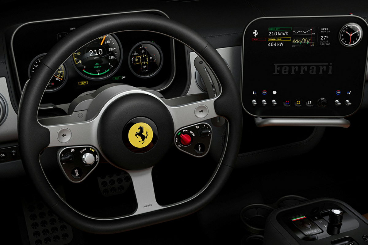 Ну вот наконец-то! Ferrari решила вступить в клуб электрических машин, представив первые фото своего нового творения — модели **Luce**, что значит «свет». Только свет этот пока больше похож на тусклый ночник: фирма показала нам интерьер автомобиля, но забрала всю радость увидеть экстерьер обратно до мая месяца.