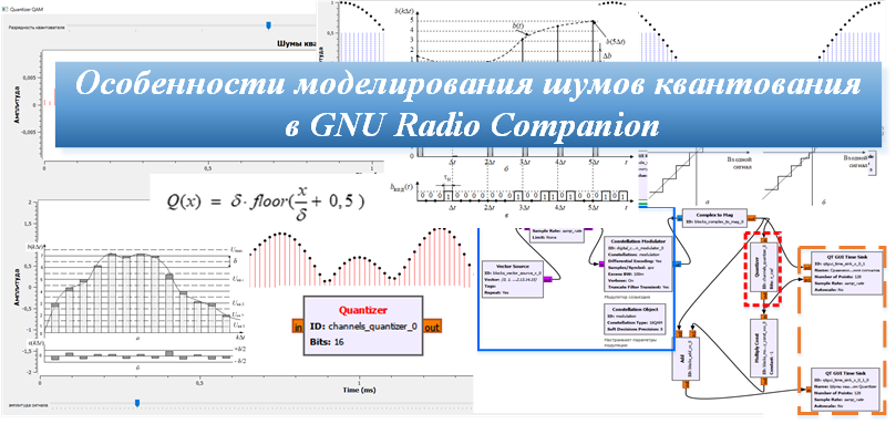 Блок «Quantizer» библиотеки «Impairment Models» среды GNU Radio моделирует искажения сигнала, вызванные применением операции квантования по уровню (рис. 5). Блок вносит искажение, изменяющее отношение сигнал-шум относительно входного сигнала на заданную величину шума квантования.