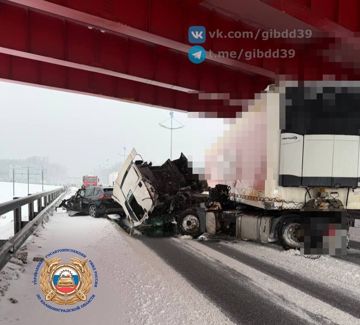 🔤🔤🔤🔤🔤🔤 По оперативной информации, сегодня,11.02.2026 в районе 16 часов 20 минут на автодороге «Приморское полукольцо» в районе съезда на аэропорт Храброво Гурьевского района, водитель, управляя автомобилем «Ман» с полуприцепом, двигаясь со стороны города Калининграда в направлении города Зеленоградска, допустил наезд на дорожное ограждение. Водитель автомобиля «Тойота», двигавшаяся за автомобилем «Ман», допустила наезд на остановившийся полуприцеп. ❕В результате дорожного происшествия водитель автомобиля «Ман» скончался. Водитель автомобиля «Тойота» получила телесные повреждения направлена в медицинское учреждение. 🚓🚓В настоящее время на месте дорожного происшествия работают сотрудники Госавтоинспекции и полиции. 📓📔📒📕 ⚡️В связи с загруженностью автодороги и перекрытием проезжей части, Госавтоинспекция рекомендует использовать альтернативные маршруты движения. Обращаем ваше внимание, что указанные сведения носят исключительно информационный характер и не определяют степ