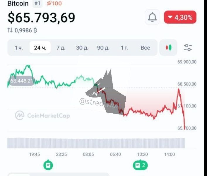 Биткоин ниже $66 000.
