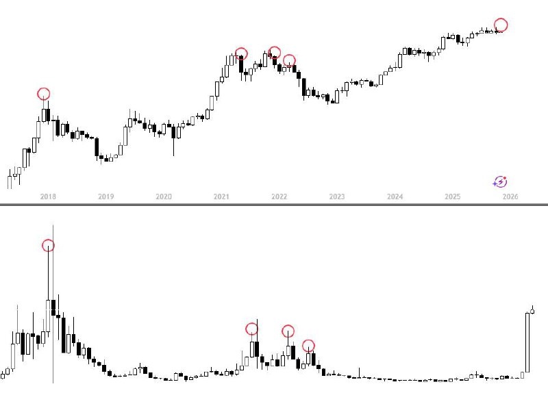 Совпадение? Уже нет Есть один любопытный паттерн, который рынок снова подтвердил. Каждый раз, когда Zcash делал резкое и аномальное движение, это совпадало с локальным топом по BTC. Не один раз. Не два. 4 из 4. Без исключений. Исторически это выглядело так: — в рынке нарастает эйфория — капитал начинает перетекать в «экзотические» активы — Zcash внезапно оживает — через короткое время BTC разворачивается И сейчас мы снова увидели то же самое. Zcash отметил вершину — и с этого момента BTC уже -50%. Важно не воспринимать это как «сигнал к действию». Это маркер состояния рынка. Надеюсь, что в пятый раз мы отнесемся к нему серьезнее 🤷♂️ Ведь когда начинают стрелять такие активы — это почти всегда поздняя фаза цикла, когда риск уже недооценён, а жадность переоценена. Главное, что нужно понимать: рынок редко предупреждает словами — он предупреждает структурой движений. Если хотите, могу разобрать: — почему именно такие активы всплывают на вершинах — как отличать шум от системных с
