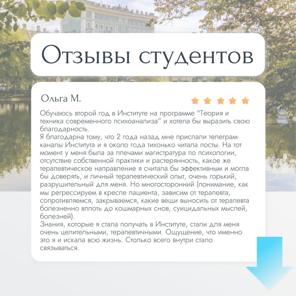 Тому, что доступны разные форматы: участие в разборе клинических случаев французских мэтров, с этого года - участие в супервизиях под руководством Ларисы Ивановны Фусу, как бережно к участникам они проходят. Благодарность тому, что Институт придерживается чистоты психоаналитического метода, этических принципов, самой их сути по отношению к человеку вообще. И тому, что есть возможность изучать именно французскую школу, такую бережную и деликатную. У меня есть надежда возрасти здесь как специалист, имея такую опору. Огромная благодарность всем, кто организует учебный процесс, организацию мероприятий, вебинаров, в т.ч. бесплатных! Переводит синхронно мэтров, переводит книги. Кто занимается сайтом, чтобы сориентироваться в мероприятиях. Я так рада здесь быть. #институтпсихологииипсихоанализаначистыхпрудах #отзывыстудентов