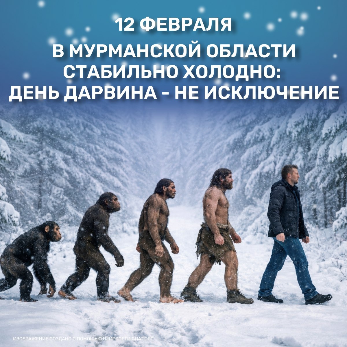 🥶 В Кольском Заполярье 12 февраля, в День Дарвина и День прокладывания тропинок, при прояснениях ожидается мороз до -32 градусов