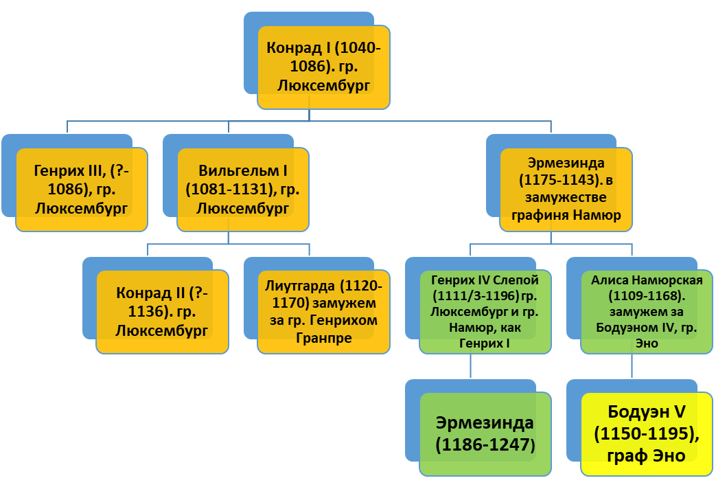 Предварительные переговоры прошли вероятно в начале 1187 года, и вот граф Шампани, который 13 января 1186 года (то есть сразу после свадьбы своей сестры Марии и молодого Бодуэна) торжественно поклялся принять в жены Иоланду Эно, уже 29 марта 1187-го, клянется брать в жены Эрмезинду, дочь графа Намюра и Люксембурга, таким образом став наследником Генриха Слепого. Знаете, чего не хватало чтобы внести окончательный хаос в этот парад торжественных клятв и попранных обещаний? Если бы Агнесса, благочестивая супруга Генриха родила ему бы ему не просто мальчика, а мальчика после дочери - прямо не знаю. Чтобы тогда граф Люксембурга делал и как бы он попытался вывернуться.