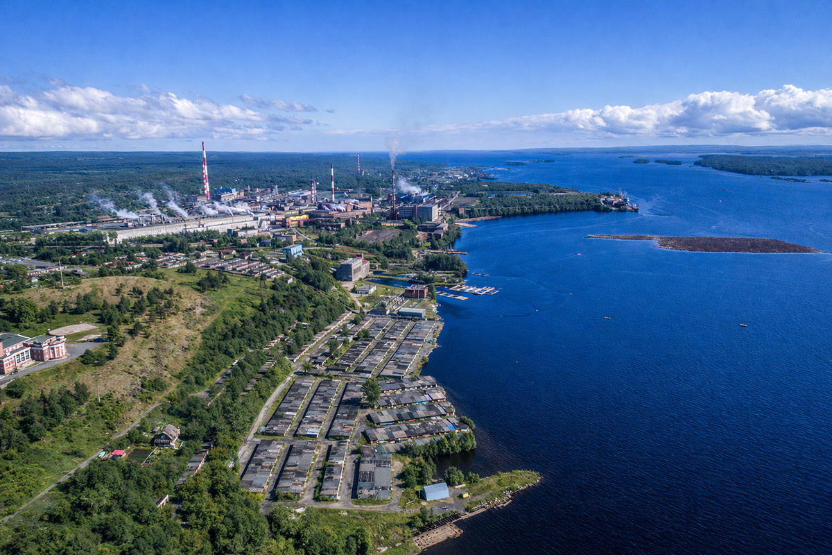 Завод стоит на берегу Выгозера, и его корпуса видны издалека. Ночью они подсвечиваются, и тогда город напоминает декорации к фантастическому фильму.