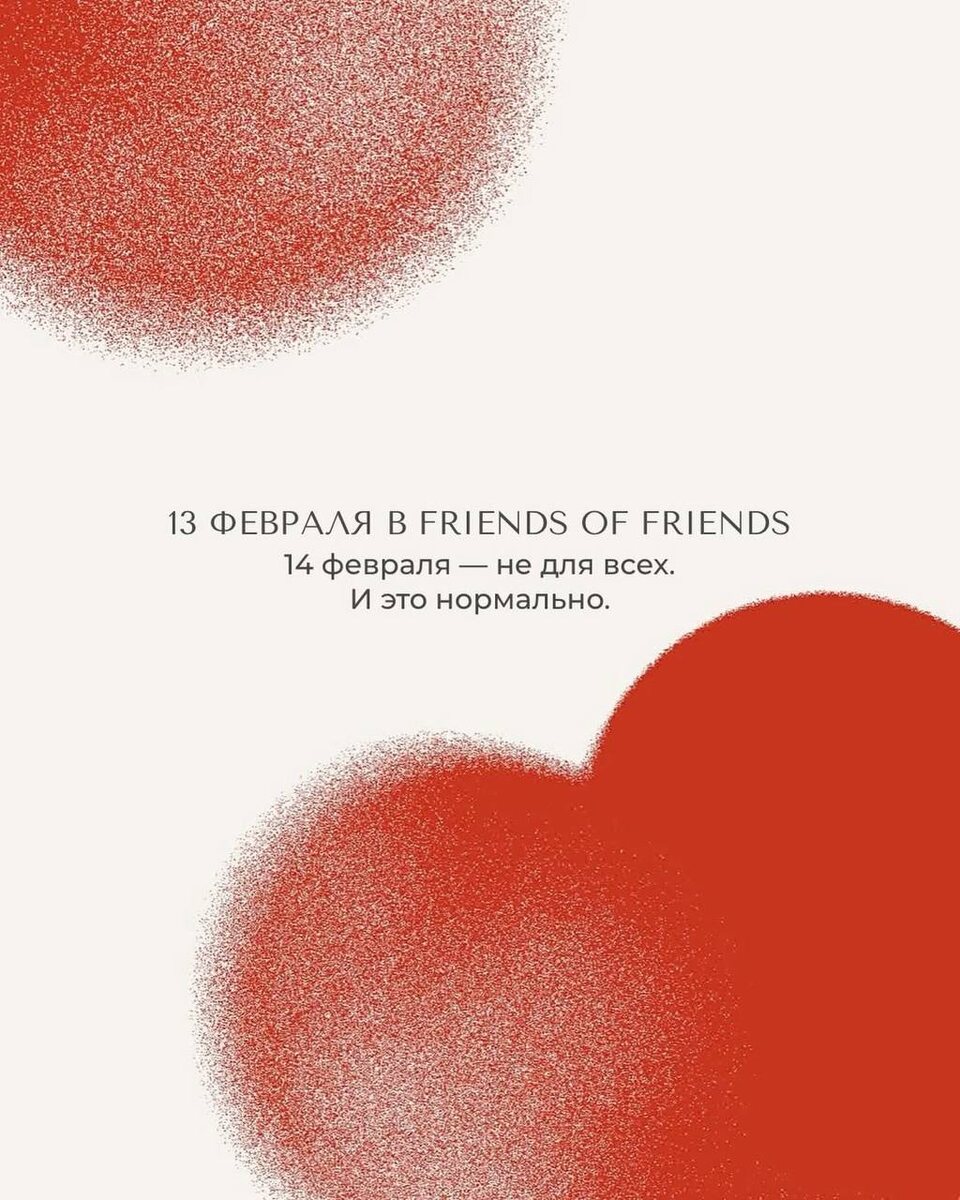Friends of Friends решили поддержать тех, кто не празднует 14 февраля – приходите в ресторан 13 числа, по паролю «без валентинок» вас угостят бокалом игристого 🥂