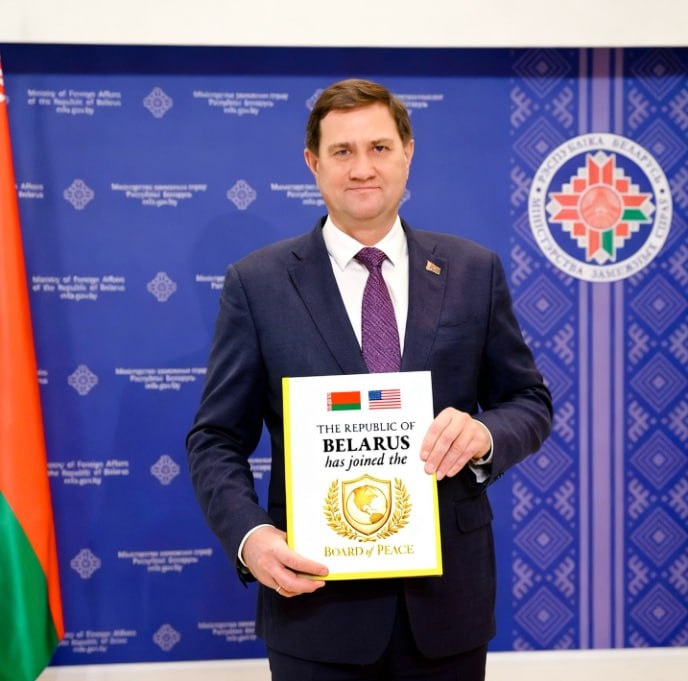 МИД опубликовал фото, на котором Максим Рыженков держит документ с текстом "Республика Беларусь присоединилась к Совету мира