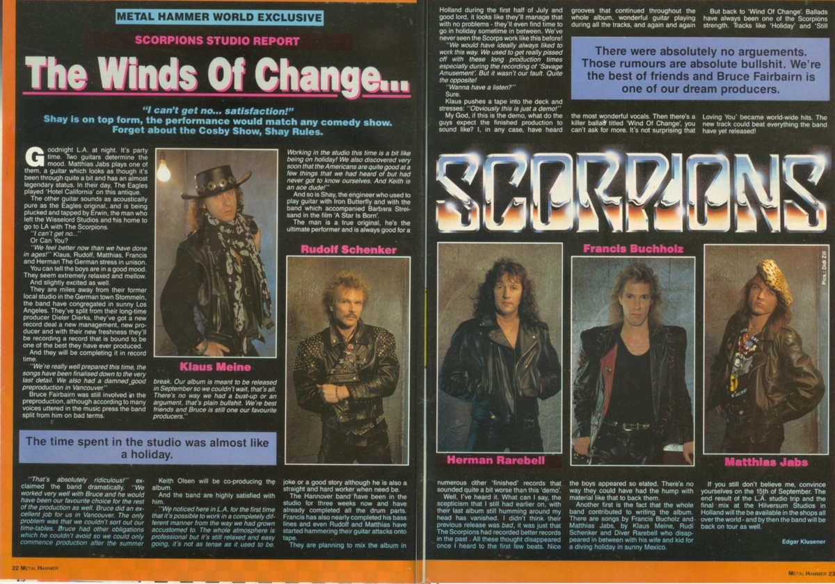 Что ж, я послушал. Что еще сказать? Скептицизм, который еще теплился во мне (учитывая, что их прошлый альбом все еще крутился в голове), испарился. Я не считал их предыдущий релиз плохим, просто у SCORPIONS в прошлом были записи и получше. Но все эти мысли исчезли после первых же тактов. Классный драйв, проходящий через весь альбом, великолепная игра на гитаре во всех треках и снова – потрясающий вокал. А еще там есть убойная баллада под названием Wind Of Chang», большего и желать нельзя. Неудивительно, что парни выглядят такими воодушевленными. С таким материалом за спиной у них просто не могло быть плохого настроения.