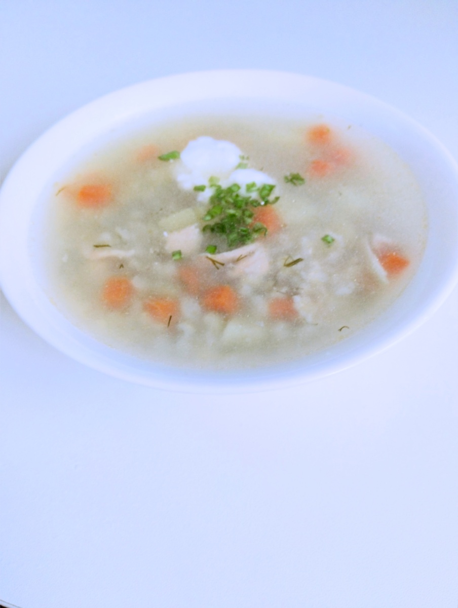 Залить голову, хвост и обрезь водой, довести до кипения и верить на тихом огне минут 30. Затем процедить бульон, с костей отделить мясо, а остальное выбросить. Добавить в бульон спассерованные в небольшом количестве масла лук с морковью, кубиком. Следом