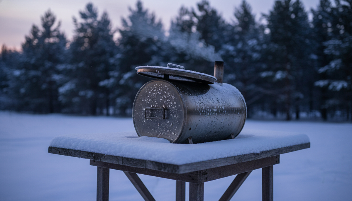 Зимой конденсат в коптильне появляется у многих: щепа тлеет, дым идёт, а в итоге на крышке капли, на продукте мокрая плёнка, корочка не берётся и запах выходит «подвальный».