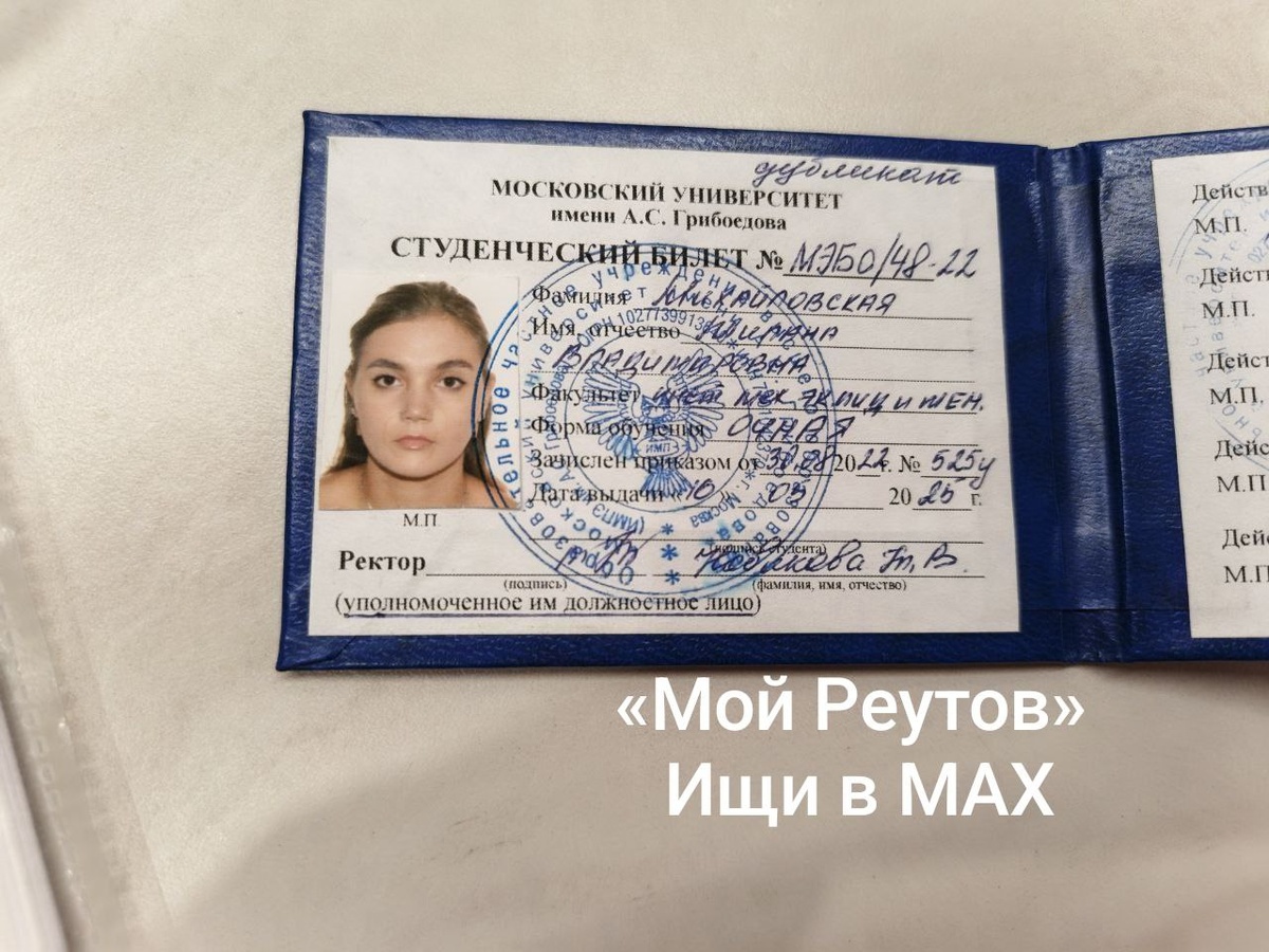 ‼️Найден студенческий билет на имя: Михайловская Милана Владимировна возле дома по адресу: Юбилейный проспект, д. 69.
