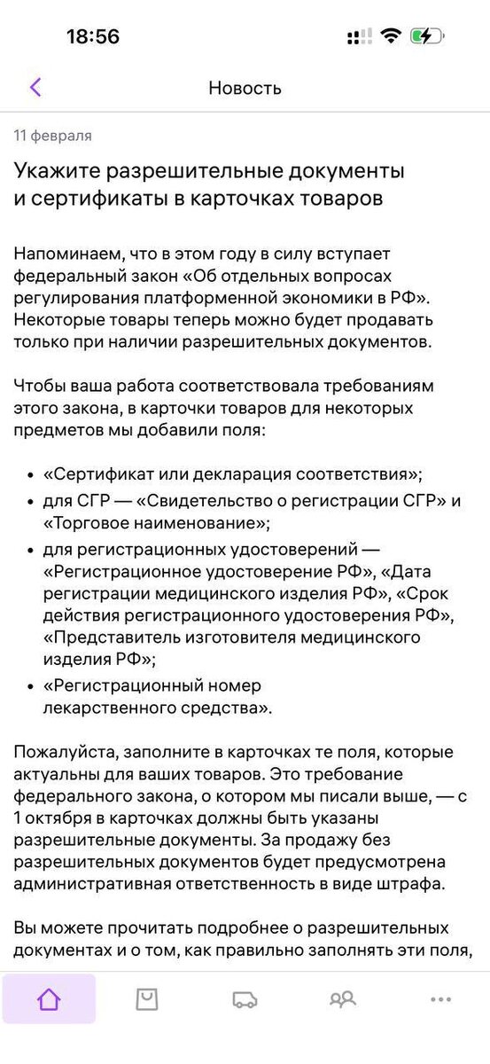 Этот день настал. Теперь маркетплейсы требуют документы в рамках Закона о платформенной экономике. Это значит, что ваш пакет документов: 1️⃣ Сертификаты/декларации/отказные письма 2️⃣ Наличие пакета документов от поставщика, включая грузовые таможенные декларации и таможенные маркировки 3️⃣ Маркировки Честный Знак – если она требуется Должен быть прозрачным: 👉 Производитель или поставщик, товары, артикулы – должны полностью и в точности совпадать во всех документах. Ну, конечно, если этот пакет документов у вас вообще есть. К этой же информации нужно добавить, что дополнительно или вместе с этим нововведением с 2025 года уже работает интегрированная в маркетплейсы система «Налог-3», которая позволяет автоматически проверять то, что: ✅ Товар ввезен из-за рубежа ✅ Прошел ли он таможенное декларирование и есть ли пакет документов, подтверждающих это, включая грузовые таможенные декларации, уплату НДС и пошлин, и наличие таможенной маркировки и, если требуется, регистрации кодов ма