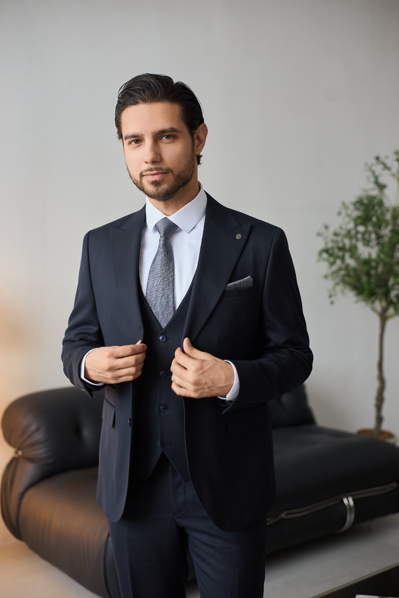 Материал. Отличный выбор — шерстяные ткани с примесями кашемира или альпаки. Такие костюмы прослужат долго и обеспечат комфорт в любое время года.