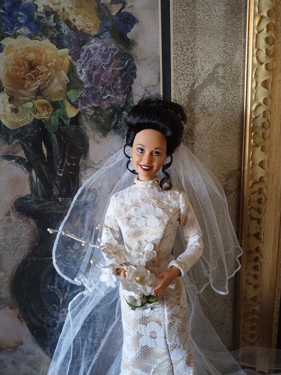 Всем доброго дня! Сегодня я наконец выбрала время сделать публикацию о самой, наверное, редкой и эксклюзивной винтажной портретке Барби - Эрике Кейн. Эта кукла, без преувеличения - одна из самых дорогих и ярких жемчужин моей коллекции. И огромная удача для меня. Я купила эту куклу случайно, в Трифт сторе, то есть бушную. И хоть она была вроде бы в оригинальной коробке - но все было простов ужасном состоянии. Как будто коробка долго лежала во влаге и грязи, плесень и разводы были везде, в том числе и на бедной кукле. Можно сказать что на первый взгляд - это был 100% треш, мусор. Который просто надо было выбросить. Но я заплатила за этот треш 7 долларов и решила куклу спасти. Об этом я даже писала статью, где просила совета, как очистить куклу. Вот здесь И я эту Барби спасла. Платье и фату удалось постирать, а вот лицо, которое было покрыто глубоко вьевшимися темными пятнами плесени - было очень трудно очистить. Я пробовала много способв, в итоге помогло только это: И моя куколка ста