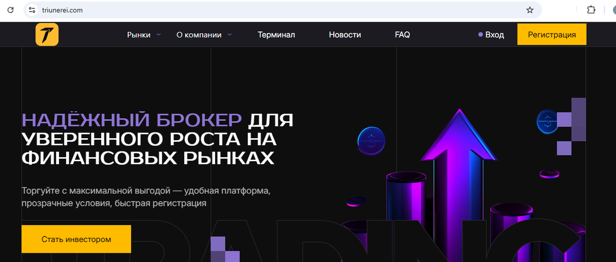 Triunerei.com и его платформа Triune-rei.link — это яркий пример так называемых «поддельных брокеров», которые создаются исключительно для хищения личных сбережений. Каждый день десятки людей, желающих найти дополнительный заработок, натыкаются на подобные сайты и теряют свои деньги. Чтобы не попасть в эту ловушку, достаточно знать всего несколько признаков, по которым мошенника видно за версту. Финансовые пирамиды и лжеброкеры всегда играют на жадности и надежде. Схема стара как мир, но до сих пор работает. Представители проектов Triunerei обещают клиентам фантастическую доходность -от 20 до 40 процентов ежемесячно. Официальная мировая биржевая доходность в лучшие годы составляет 15-20% годовых, а здесь вам сулят ту же сумму за 30 дней. Почему это обман? Потому что ни один легальный инструмент не дает такой прибыли без запредельных рисков. Когда «брокер» требует постоянно докидывать деньги, чтобы «открыть сделку», «подтвердить личность» или «разблокировать вывод», — это маркер чистого