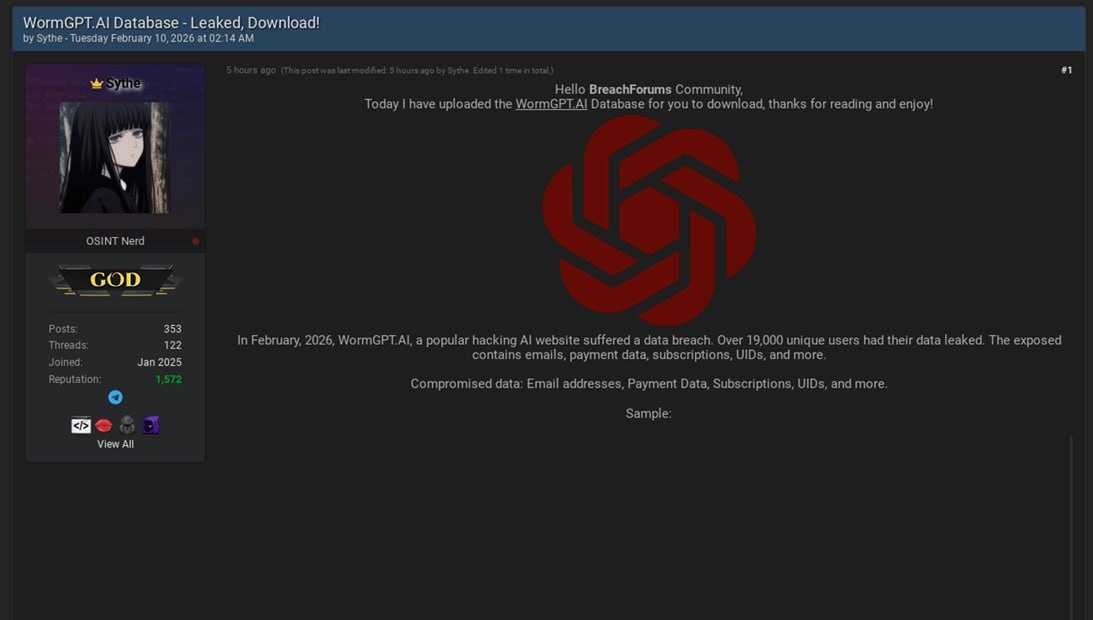 #news У WormGPT возможная утечка пользовательских данных: в открытом доступе база юзеров на 19,000 обращавшихся к запретному кремниевому