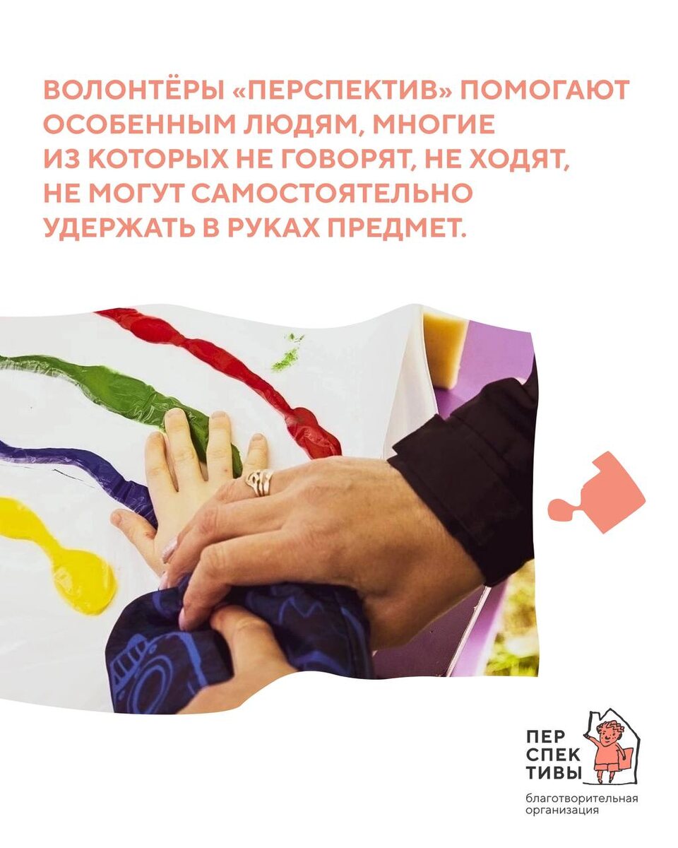 Но у меня был запрос на то, чтобы менять свою жизнь и что-то вокруг — и волонтёрство мне в этом помогло. Я знакомилась с миром заново. Узнавала, как общаться без слов, как не принимать решений за человека, как помогать по-другому. Так менялась я. Вокруг теперь тоже всё было иначе: стало виднее то, что раньше не попадало на глаза. В университете, дома, на работе я рассказывала о ребятах. Теперь это стало частью не только моей жизни. Волонтёрство — это не про одноразовую помощь. Это про изменения». Вероника Дмитриева была волонтёром «Перспектив», а теперь стала координатором волонтёров. В карточках она делится размышлениями о волонтёрстве в «Перспективах». Сейчас мы открыли новый набор на эксклюзивную волонтёрскую программу (формат XL). Волонтёр XL становится помощником особенного человека на 3–5 раз в неделю по 6–7 часов. И получает: ✨ компенсацию на питание (700 ₽ в день), проезд (по факту), связь (500 ₽ в месяц); ✨ проживание в волонтёрской квартире для участников из других регион