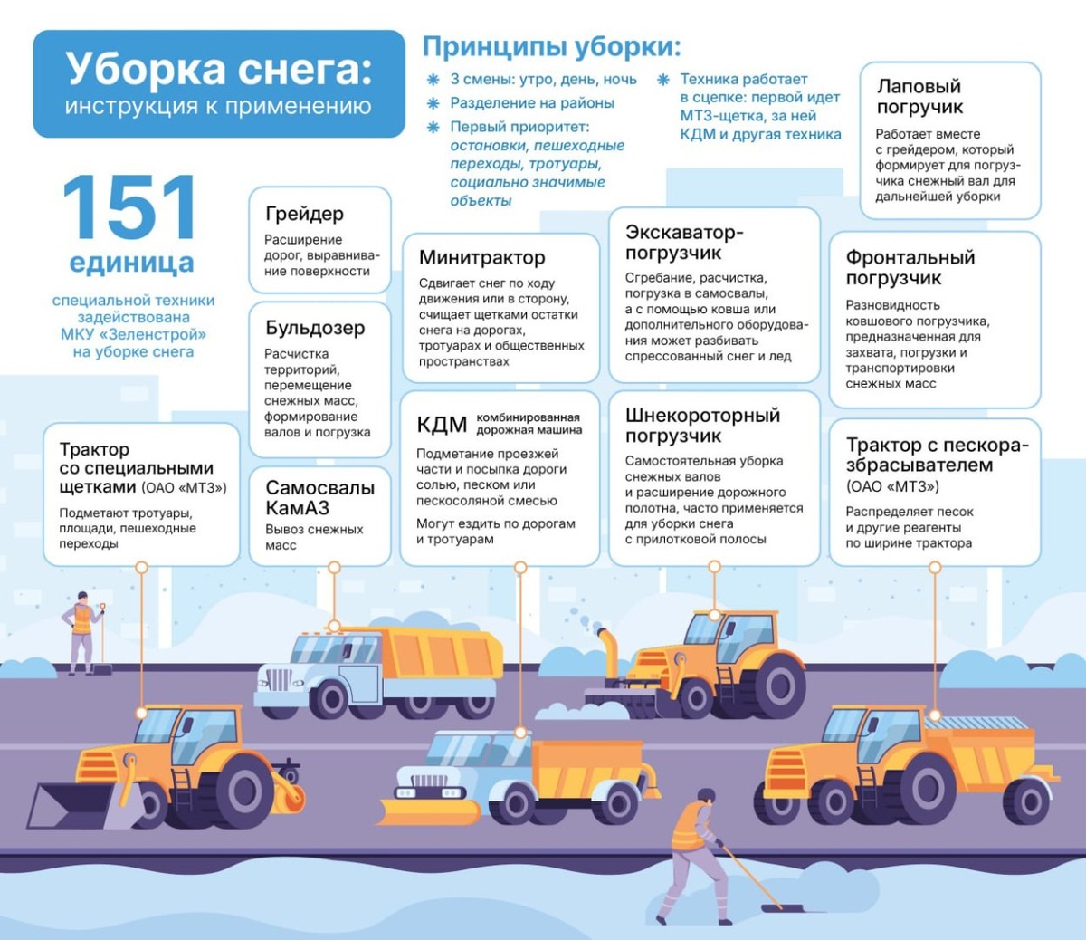 💭 151 единица техники «Зеленстроя» и их возможности. Благодаря поддержке губернатора Георгия Филимонова автопарк МКУ «Зеленстрой» оснащён современной техникой, которая позволяет решать практически любые задачи по зимней уборке города в самых разных погодных условиях. На балансе учреждения 151 единица спецтехники: 26 комбинированных дорожных машин, 29 тракторов, 16 самосвалов, 18 экскаваторов, 16 снегопогрузчиков, два бульдозера, четыре автогрейдера, два автоподъемника, а также крано-манипуляторная установка, ломовоз, прицепы и другая техника. Комбинированные дорожные машины подметают и обрабатывают проезжую часть противогололедными смесями. Тракторы МТЗ со щетками чистят тротуары и пешеходные переходы. Снегопогрузчики — шнекороторные и лаповые. Шнекороторный самостоятельно убирает снежные валы, лаповый работает в паре с грейдером. Автогрейдеры расширяют дороги и выравнивают поверхность. Техника работает по утвержденным маршрутам. Город разделен на районы: Верхний Посад, Нижний П
