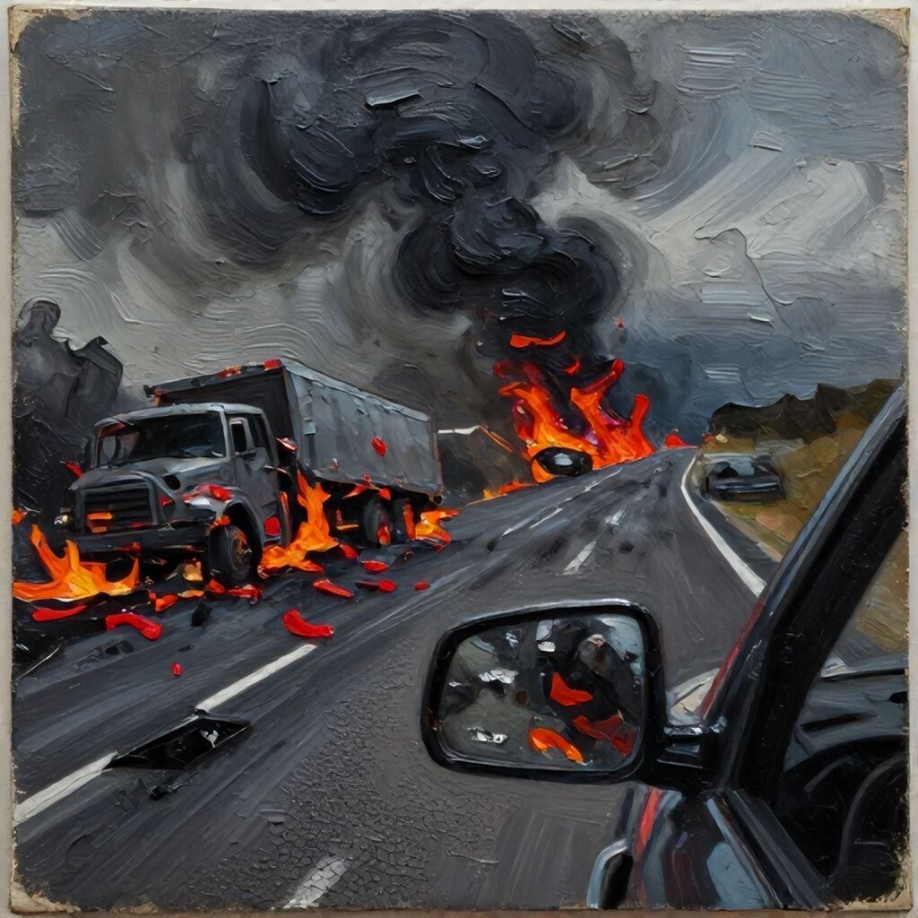 Она приподнялась — перед глазами плыли чёрные пятна. «Волга» горела. Двигатель взорвался. Крышка капота улетела в крапиву. Рядом лежал мужик в майке, неподвижный.