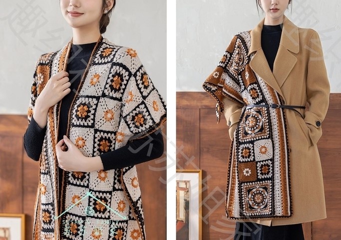 Увидела роскошную, удивительно красивую вещь от японских мастеров, вязаную крючком мотивами. При чём мотивы использованы разные в модной цветовой гамме...